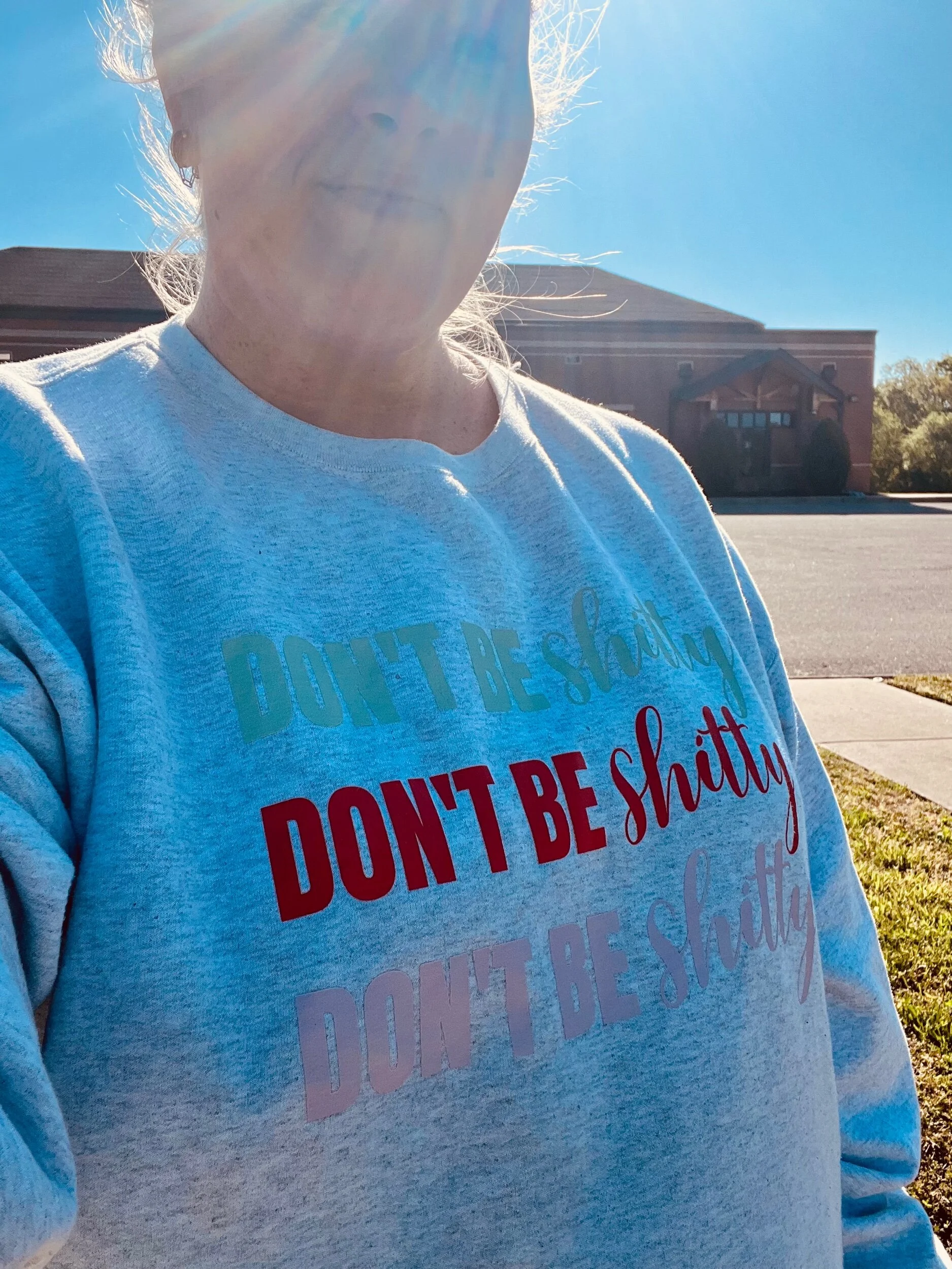 Categories: All PRE-ORDERS SALE READY TO SHIP FESTIVE SHIZ T-SHIRTS CREWNECKS HOODIES KIDS EXTRAS All | PRE-ORDERS | SALE | READY TO SHIP | FESTIVE SHIZ | T-SHIRTS | CREWNECKS | HOODIES | KIDS | EXTRAS | All PRE-ORDERS SALE READY TO SHIP FESTIVE SHIZ T-SHIRTS CREWNECKS HOODIES KIDS EXTRAS DON'T BE SHITTY-- SCREW CANCER!! T-Shirt $25.00 DBS Digital Gift Certificate from $25.00 Oversized Sweatshirt Blanket $50.00 DON'T BE SHEETY 2.0 **READY TO SHIP!! from $12.50 Sale DON'T BE SHITTY Signature Smiley Patch Hat $25.00 Signature Smiley Iron-on Patch $5.00 Amethyst ily...DBS Tee **READY TO SHIP Sale Price: $12.50 Original Price: $25.00 Sale Green Smiley Tee $25.00 Ash Gray ily...DBS Hoodie. **READY TO SHIP $30.00 Signature Smiley Hoodie **READY TO SHIP from $25.00 Ash Gray 'GROOVY' Crewneck **READY TO SHIP $35.00 KIDS ily...DBS Hoodie Sale Price: $15.00 Original Price: $30.00 Sale ily... DBS Hoodie **READY TO SHIP Sale Price: $22.50 Original Price: $45.00 Sale DBS Koozie $5.00 DBS Smiley Bib **READY TO SHIP $8.00 DBS Smiley Tote **READY TO SHIP $12.00 "le tits now" crewneck Sale Price: $17.50 Original Price: $35.00 Sale "MERRY" Crewneck **READY TO SHIP Sale Price: $17.50 Original Price: $35.00 Sale SHITTYNESS" T-SHIRT"> "KINDNESS>SHITTYNESS" T-SHIRT $25.00 "IN A WORLD+FLOWERS" Tee $25.00 "IN A WORLD" Tee in Neon Pink $25.00 "Groovy" DON'T BE SHITTY Tee $25.00 "SMOOCH" Tee in Black/Red $25.00 'DON'T BE SHITTY Smiley' Unisex Zip-Up Hoodie $45.00 'IN A WORLD' Unisex Crewneck Sweatshirt $35.00 KIDS 'DON'T BE SHITTY Smiley' Hoodie $35.00 'DON'T BE SHITTY Smiley' Unisex Tee $25.00 KIDS 'DON'T BE SHITTY Smiley' Tee $18.00 KIDS 'ily...DBS' Tee $18.00 'ily...DBS' Unisex Tee $25.00 KIDS 'ily...DBS' Hoodie $30.00 KIDS 'DON'T BE SHITTY Smiley' Zip-Up Hooded Sweatshirt $35.00 KIDS 'ily...DBS' Zip-Up Hoodie $35.00 'DON'T BE SHITTY Smiley' Unisex Crewneck Sweatshirt $35.00 'ily... DBS' Unisex Crewneck Sweatshirt $35.00 'ily...DBS' Unisex Hoodie $45.00 'DON'T BE SHITTY Smiley' Unisex Hoodie $45.00 Vinyl stickers!! $3 each or 4 for $10. **READY TO SHIP from $3.00 Toddler ily...DBS Zip-Up Hoodie $25.00 Toddler 'DON'T BE SHITTY Smiley' Hoodie $25.00 'ily...DBS' Unisex Zip-Up Hoodie $45.00 Green and Lilac DON'T BE SHITTY T-Shirt $25.00 Snap-back Hat from $10.00 Sale Flex-Fit 'DON'T BE SHITTY' hat (READY TO SHIP!!) $20.00 'DON'T BE SHITTY' 3/4 SLEEVE BASEBALL TEE $30.00 DON'T BE SHITTY Color Changing Mug $15.00 SMOOCH!! Don't Be Shitty Crewneck. **READY TO SHIP $35.00 'Ombre DON'T BE SHITTY' Unisex Hoodie $45.00 Color in My Life Crewneck Sweatshirt $35.00 'Groovy DON'T BE SHITTY' Unisex Crewneck Sweatshirt , Ash or Black $35.00 'Ombre DON'T BE SHITTY' $35.00 Ombre T-Shirt $25.00 "The OG"Smiley T-Shirt $25.00 Sold Out